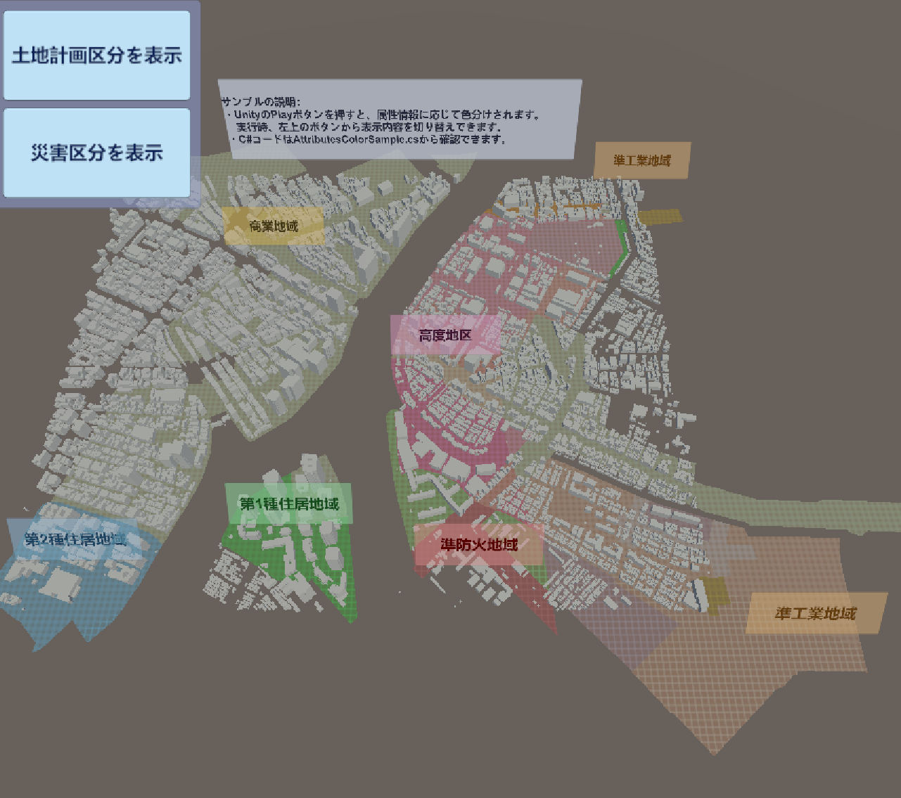 /// ランタイムで、PLATEAUの属性情報に応じて色を分けるサンプルです。